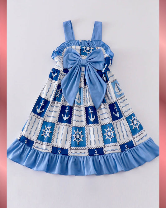 Blue sail boats checkered girl dress