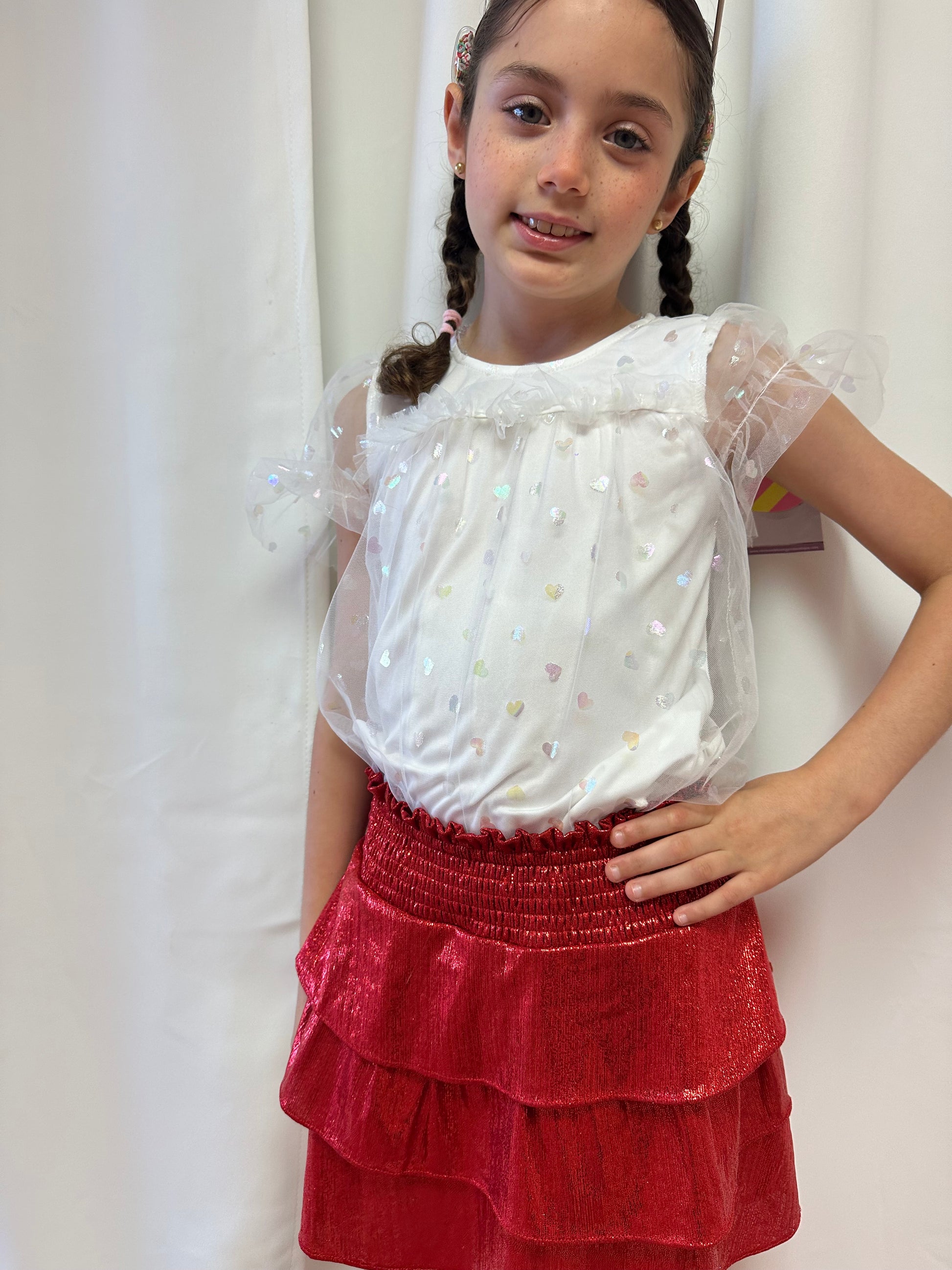 Camisa blanca casual-elegante. Con corazones en tornasol.