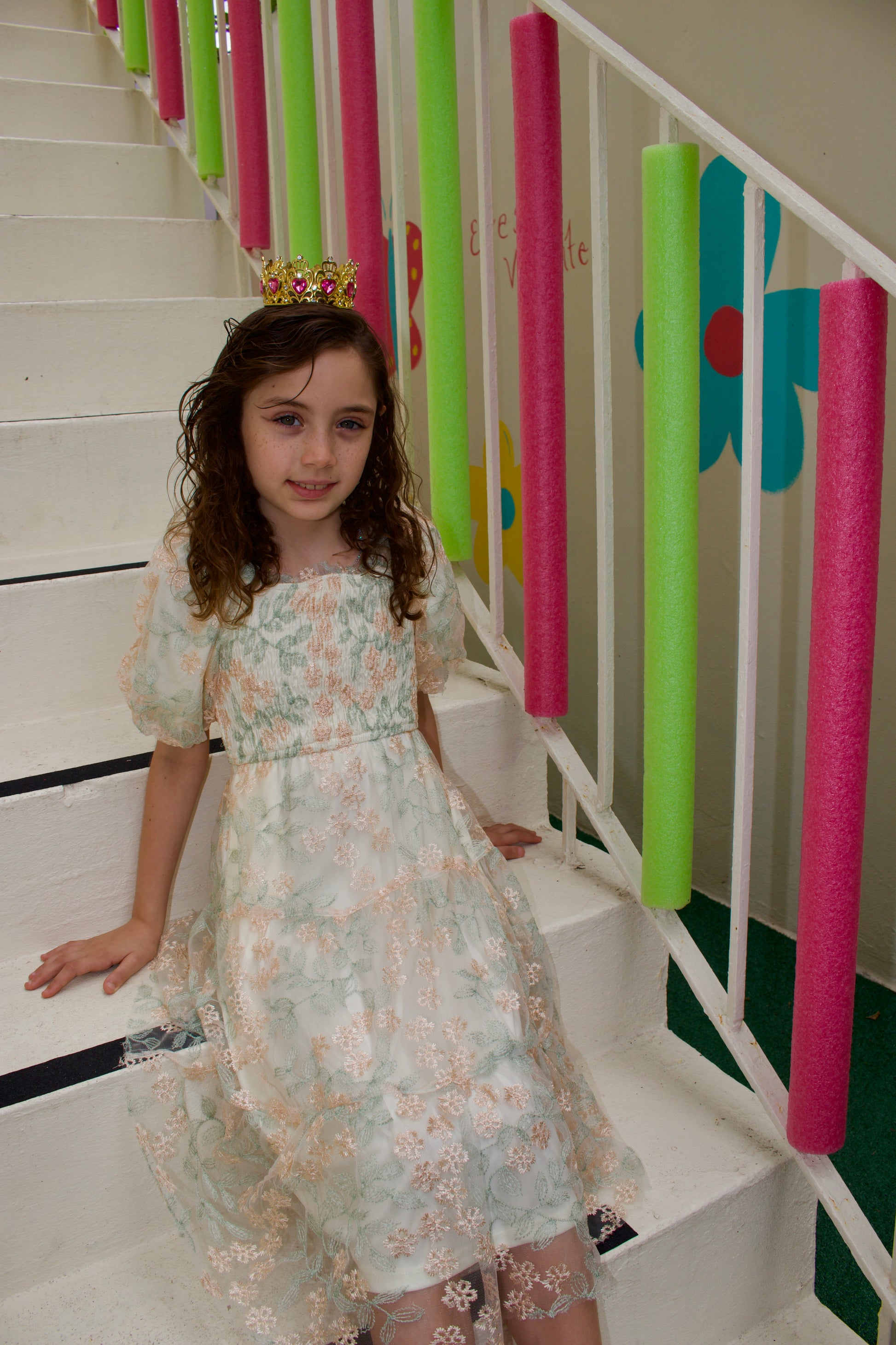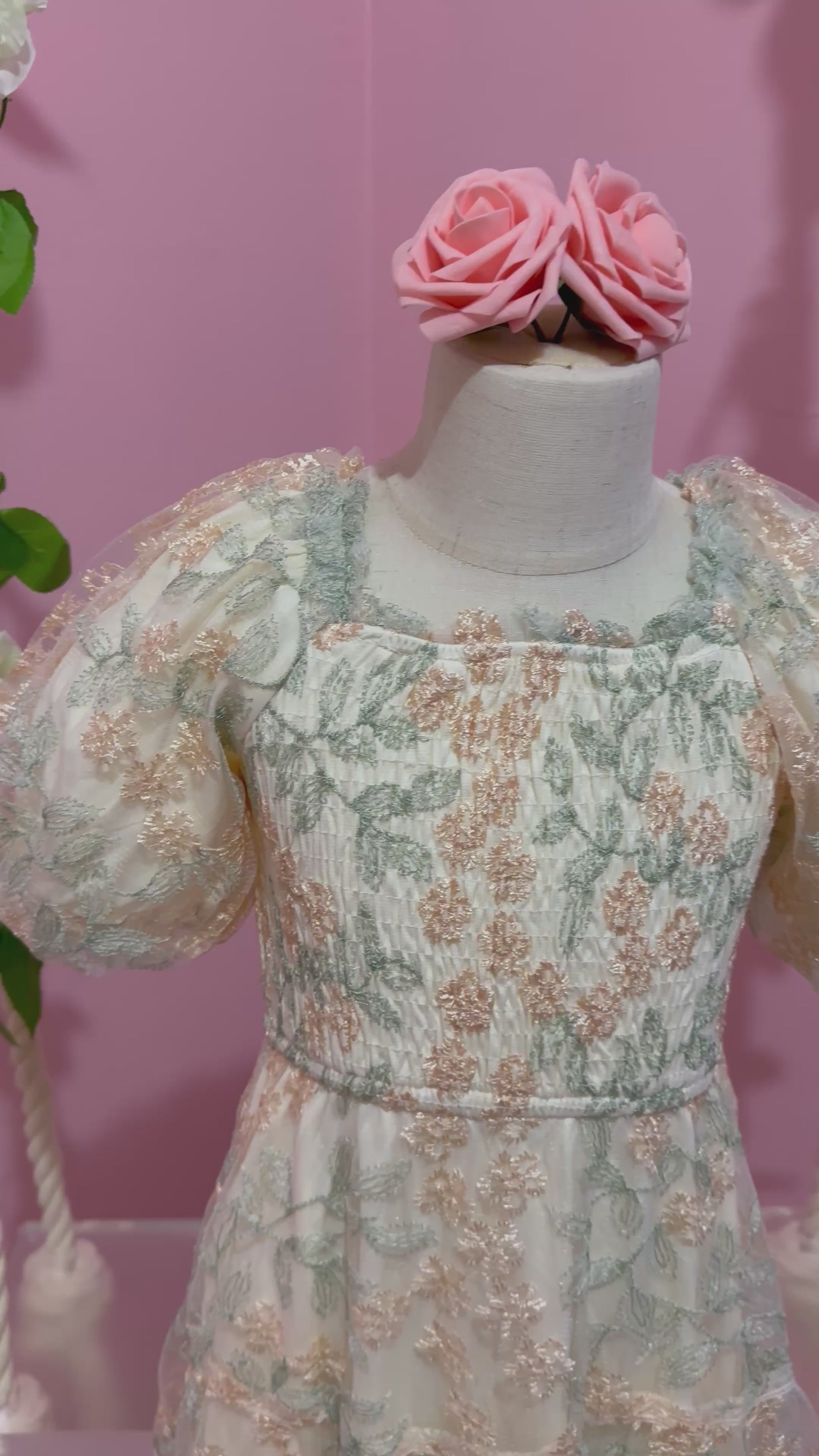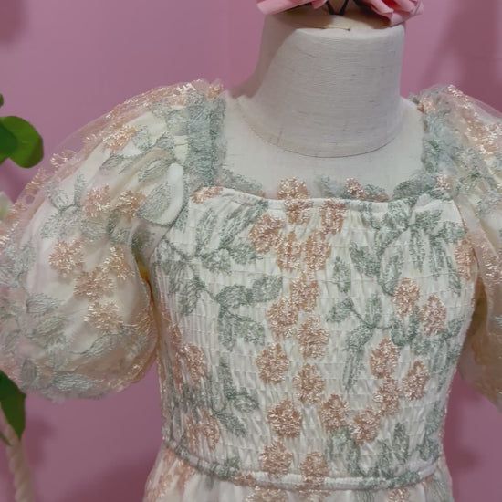 Our Smocked Floral Mesh Lace Tiered Dress Features: